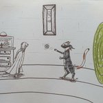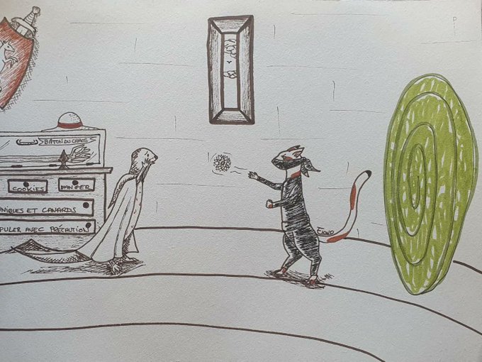 Jour 20 : SABLE MOUVANT Une fois leurs palpitations calmées, le barde leur apprit qu'ils ne pourraient pas profiter de la caravane plus longtemps car les roues étaient prises dans des sables mouvants. Il fallait attendre les secours. #inktober#loutre#otter#獺#chat#cat#猫