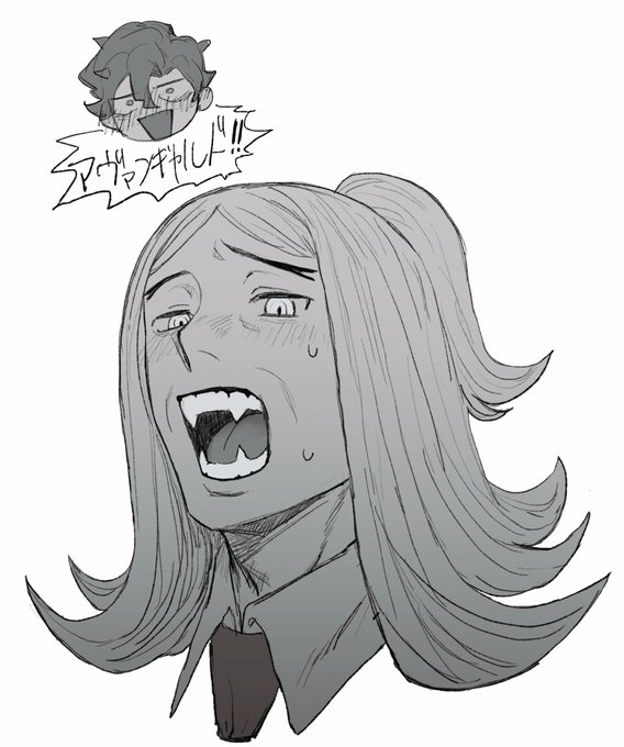 99 681 🍊に牙生えてたら事あるごとに🍊さんの牙見せてくれ!!!って言いそうだし恥ずかしいけど🌻さんの頼みなのでちゃんと見してくれるハッコルのらくがき 23/02/25 23:56
