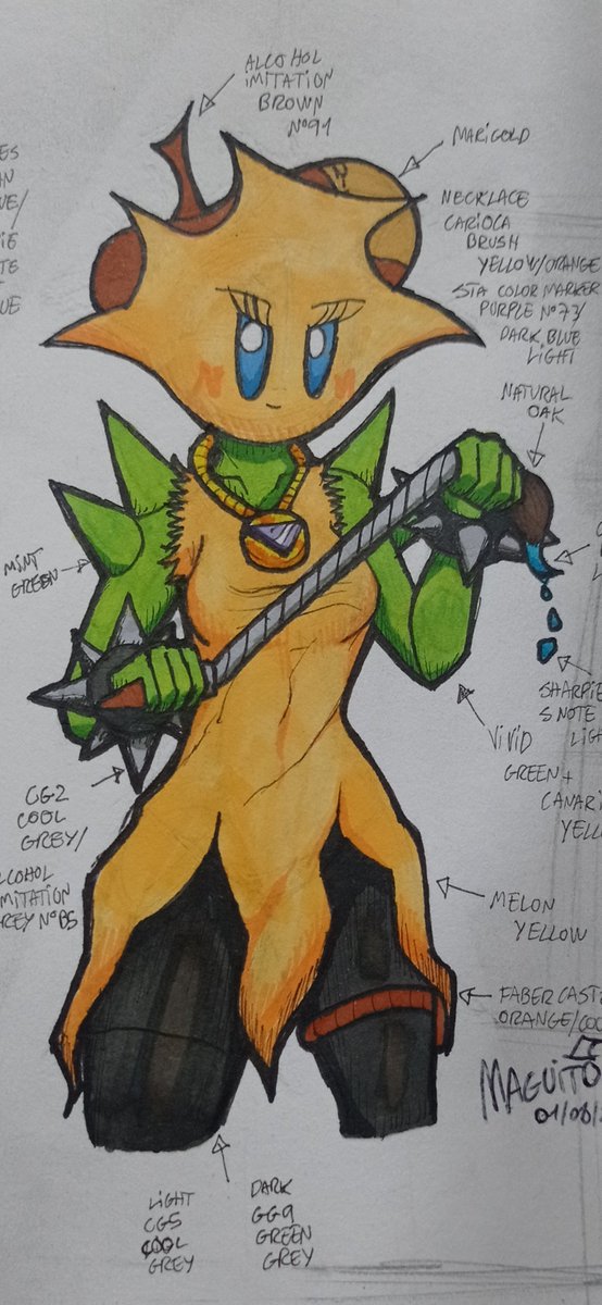 Steampunk Nicole My favorite piece so far. I learned some tricks with markers on Youtube. Maybe it's not the best painting in the worl, but I really love how it came out 😄 #oc #artwork #artistsontwitter #plantgirl #steampunk #markers