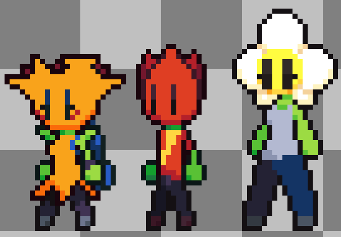 Nicole, Victor and Stella Sprites Sprites redesign, in 16 x16 resolution. This allows more details and allow to difference between small and big entities. #oc #pixelart #sprite #pixelartist #artistsontwitter