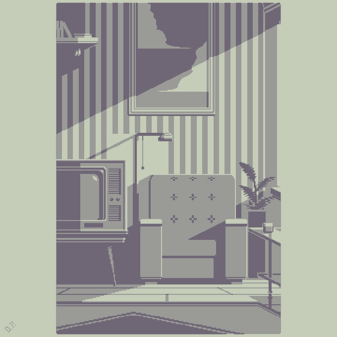 Planning to draw more in this style. It's basically the palette I use mostly - vinik 24, I just decided to try a bit different aproach, and use only 4 colours, which are pretty close to each other. #pixelart#像素画#ピクセル