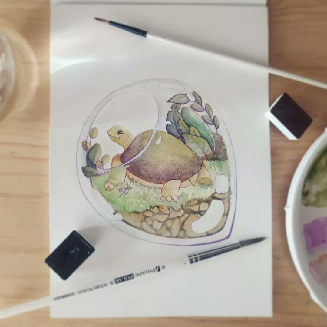 ¡¡BUENAS GENTE!! Primer día de la segunda semana y por tanto segunda temática: Postres y comida adorable Regresa el TORTUGO 💖✨ #Drawtober #artober #tintober #tintober2021 #drawtober2021 #traditionalart #Inktober #inktober2021 #acuarella #tintoberDelAdefesio