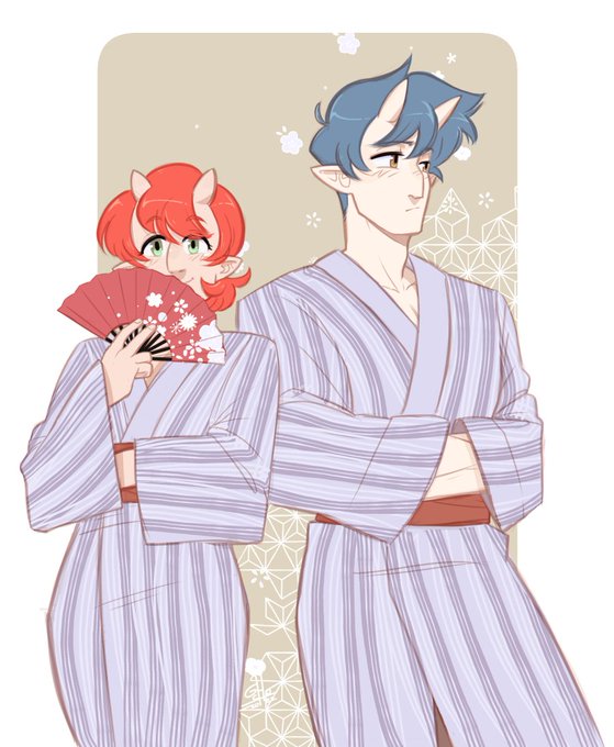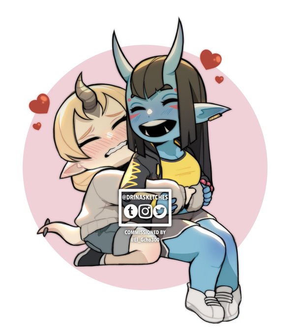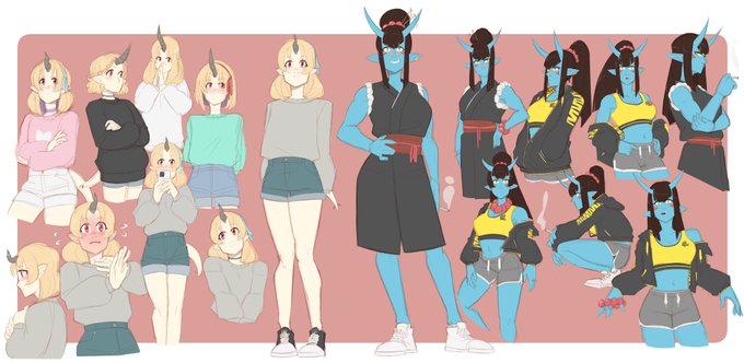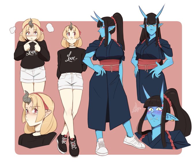 ♨️Pareja de demonios💕 He estado diseñando otra parejita de demonios para proyectitos futuros, esta vez son dos chicas... NO PREGUNTEIS😡 Soy muy simp de la Oni azul, lo siento... @ApoyaAlArtista @ConoceArtistas #ArtistOnTwitter @ElArteCanario