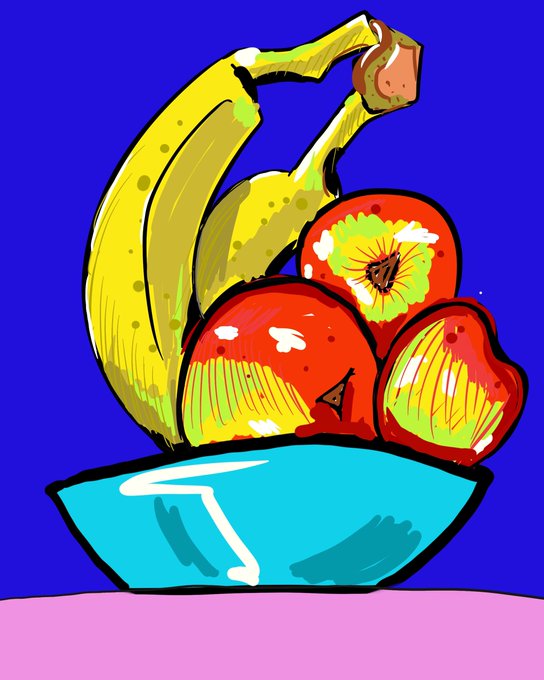 1 10 クイックな静物画に挑戦。 まぁー、まだまだだけどデジタルアートの面白さにワクワクしてる自分嫌いでは無い。 #イラスト好きな人と繋がりたい #静物画 #エルプットケン #カナリア産バナナ #ジローナ産アップル 22/08/22 04:32