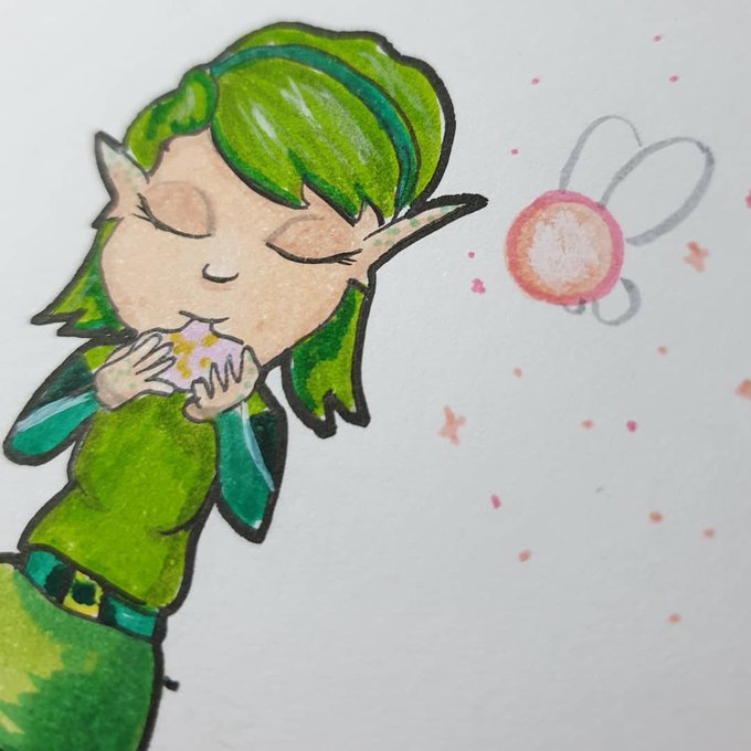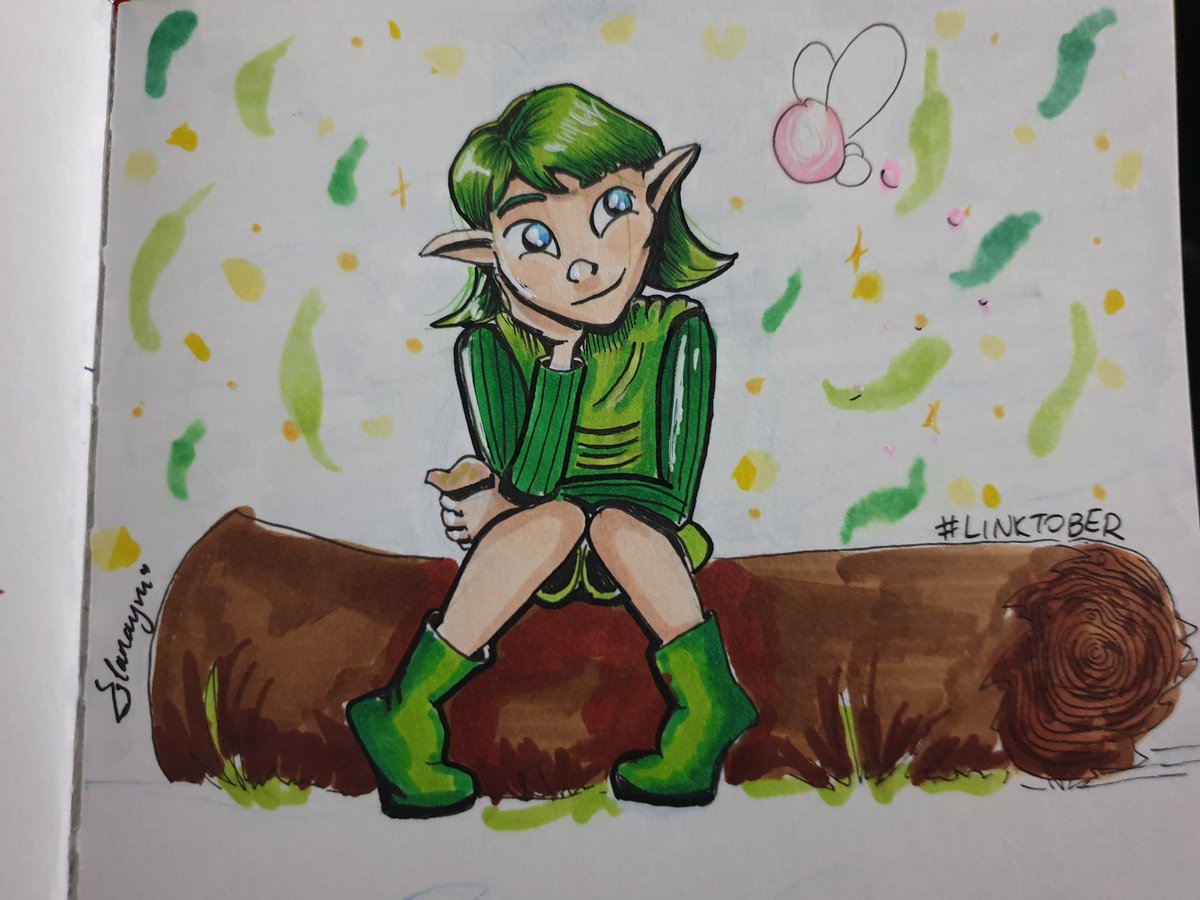 Day 19 • Link Young Link with his friend and guide Navi 🥰 #inktober2019 #Linktober #legendofzelda #loz
