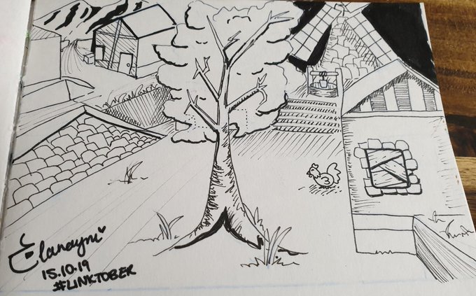 Day 15 • Kakariko Village The very first Kakariko Village I ever came across. 😍 Landscapes aren't my thing but I like this 😊 #inktober2019 #Linktober #loz #legendofzelda