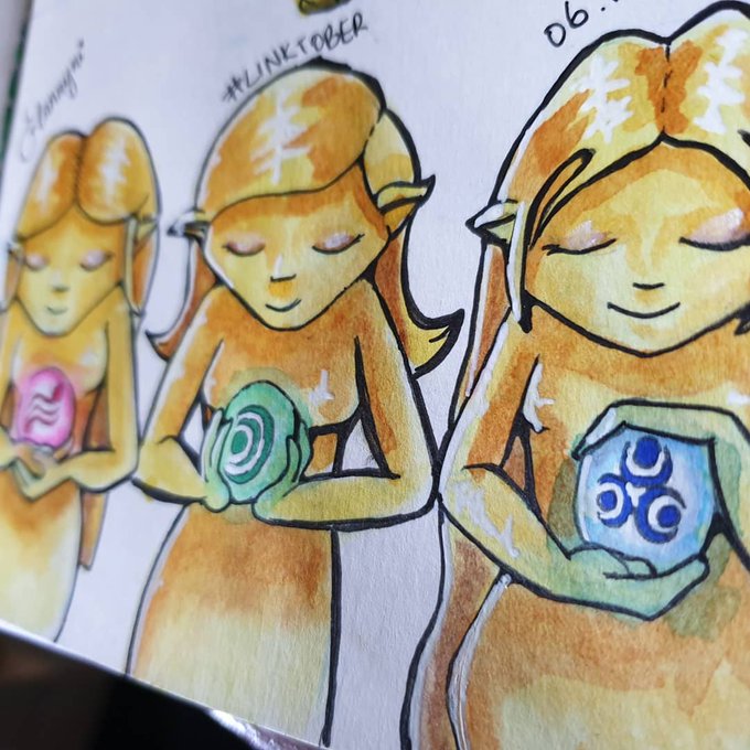 Day 6 • Din/Farore/Nayru These are the 3 Goddess who created Hyrule. So for today I created Golden Statues of the Goddesses with their respective symbols. I like this one 😁 #loz #legendofzelda #linktober #inktober2019 #artistsoflegend