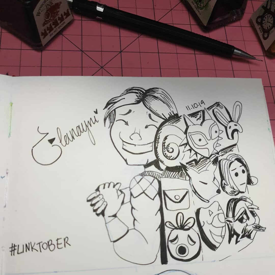 !!! I forgot to post this on Twitter last night oops!! Day 11 • Shopkeeper/Merchant The Happy Mask Salesman is always willing to work with you to become a "happiness salesman" with the aid of the many many masks at his disposal. #linktober #inktober2019 #loz #legendofzelda
