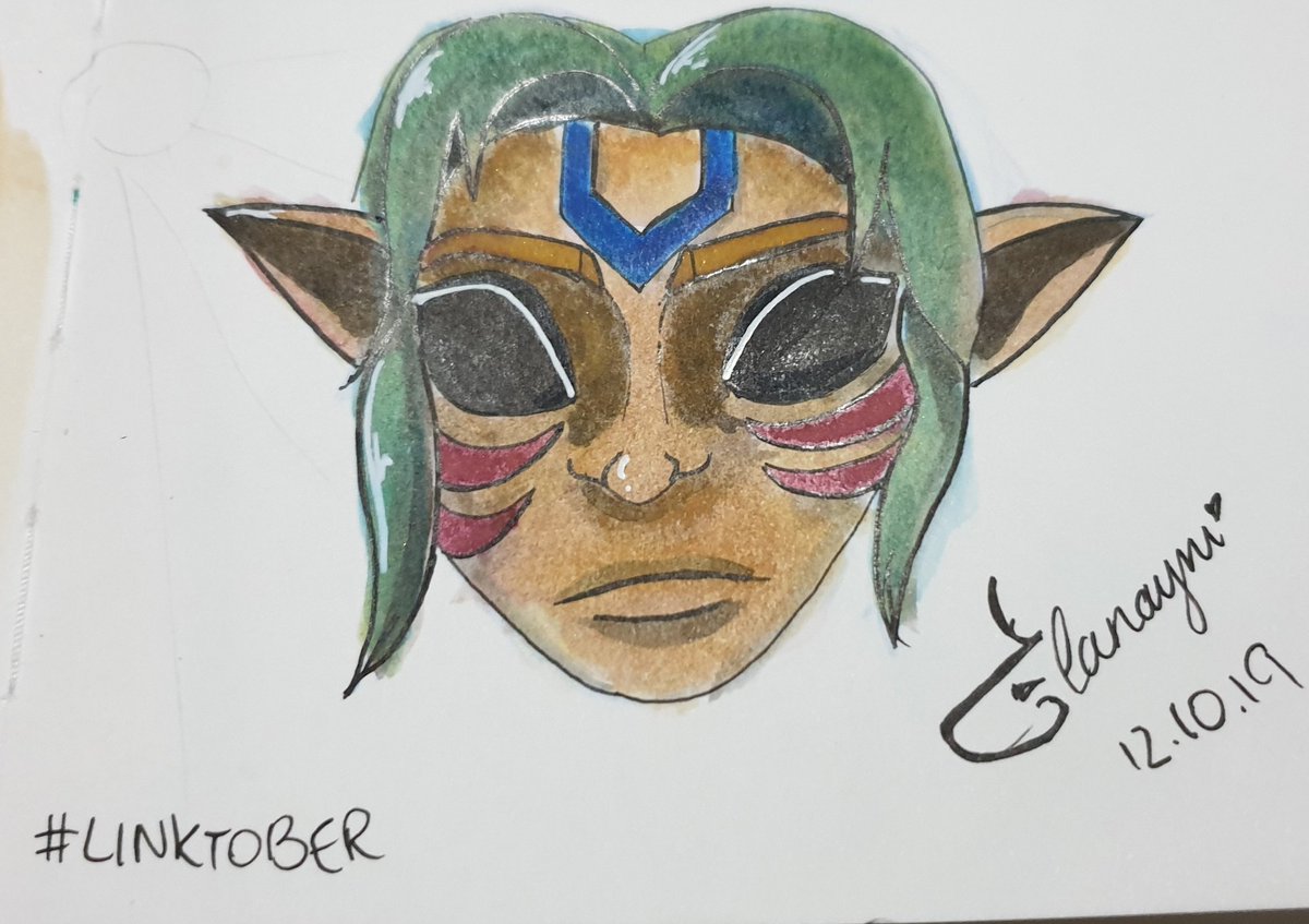 Day 14 • Skull Kid (Omg yesterdays one. I keep forgetting Twitter!!) Cute, little, misunderstood Skull Kid. 💀🙊 #inktober2019 #Linktober #loz #legendofzelda #artistsoflegend