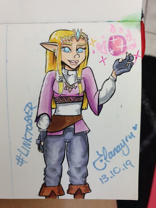 Day 13 • Zelda Princess Zelda is one of my favourite characters! I really like the outfit from Breath of the Wild, but I loovvee her design in Twilight Princess... so this is a bit of a mixture of the two 😊 #inktober2019 #Linktober #loz #legendofzelda #artistsoflegend