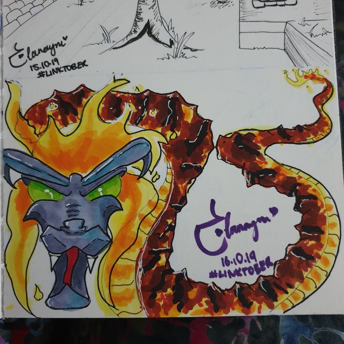 Day 16 • Dragon I was *going* for Volvagia... the Fire Temple Boss??? 😳😂💫🌋🔥 #inktober2019 #linktober #loz #legendofzelda #dragon