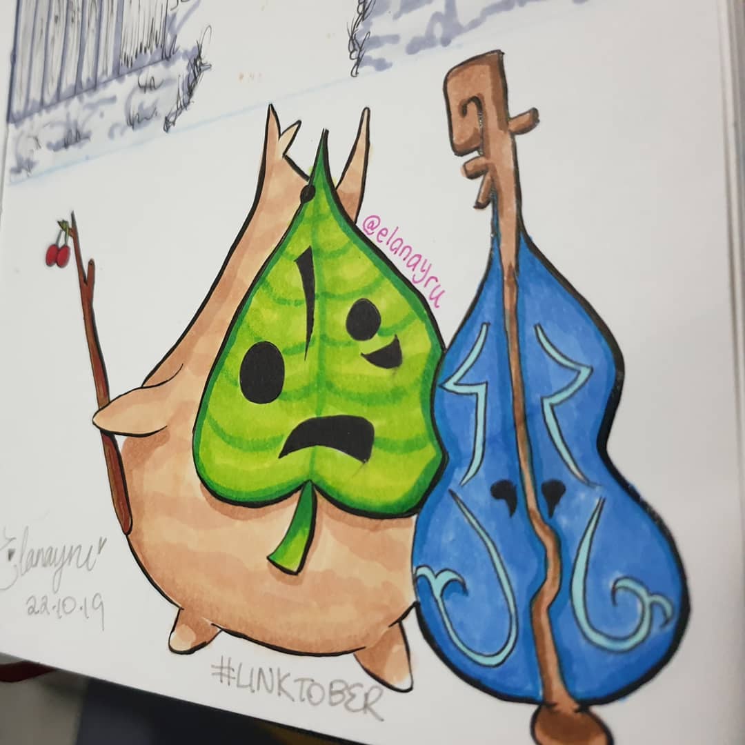 Day 22 • Korok Makar, the cutest Korok I ever did meet. He plays a violin, but because he is so short it looks like a cello!! 😂😍 #inktober2019 #Linktober #loz #legendofzelda #korok #makar