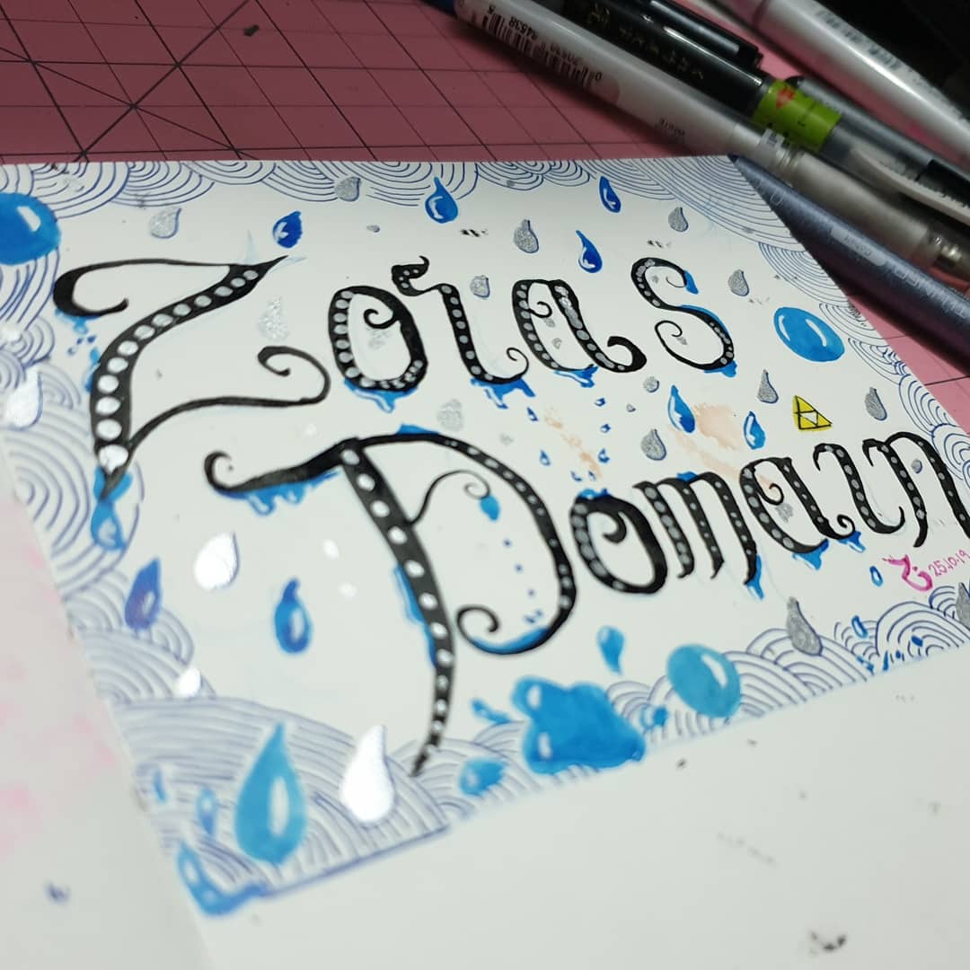 Day 25 • Zora's Domain Today was a day where my emotional bucket is running a bit dry. So I messed around with some calligraphy. I tinkered&splattered&added. And I am content. Exhausted. But ok. 😊 #inktober2019 #linktober #loz #legendofzelda #calligraphy #kindof