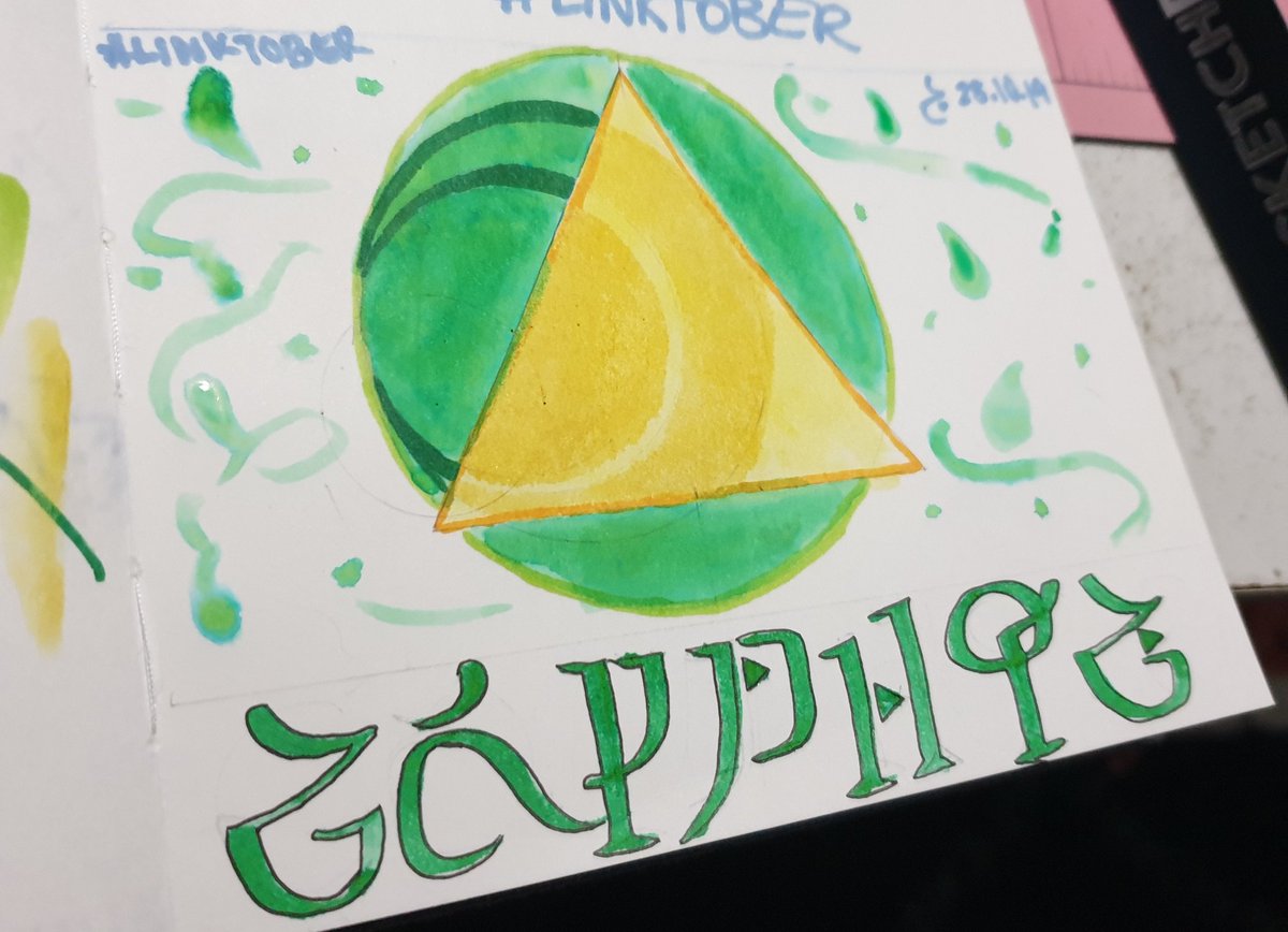 RIP I forgot to post on Twitter again hahahah Day 28 • Courage The goddess Farore's part of the Triforce is Courage. I liked how I did the Wisdom one turned out so did a similar design to that 😊 #inktober2019 #linktober #loz #legendofzelda