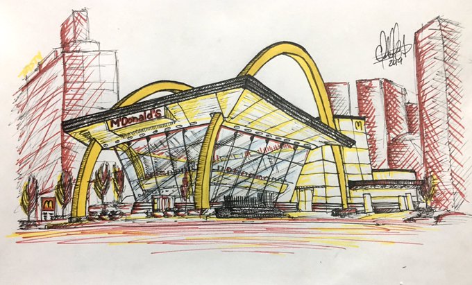 DAY 25: “Tasty” ¿A quien no le gusta @mcdonalds ? 🍔 Sketch del Rock’N’Roll McDonalds and Museum, Chicago, Illinois. @inktober . #mcdonalds #chicago #usa #inktober #drawing #architecture #arch #draw #sketch #fastdrawing #vzla #elandaetart