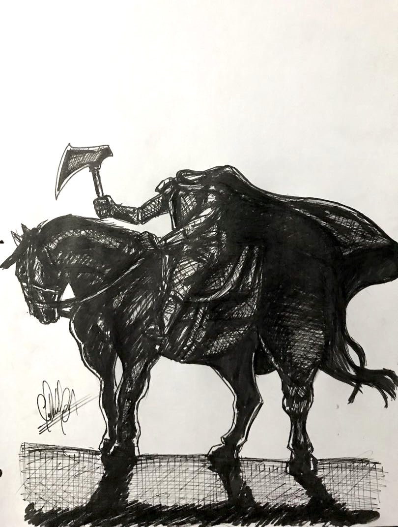 DAY 28: “RIDE” “El Jinete sin Cabeza” 💀 @inktober . . #halloween #ride #inktober #drawing #draw #art #painting #history #worldofartist #ink #sketch #elandaetart
