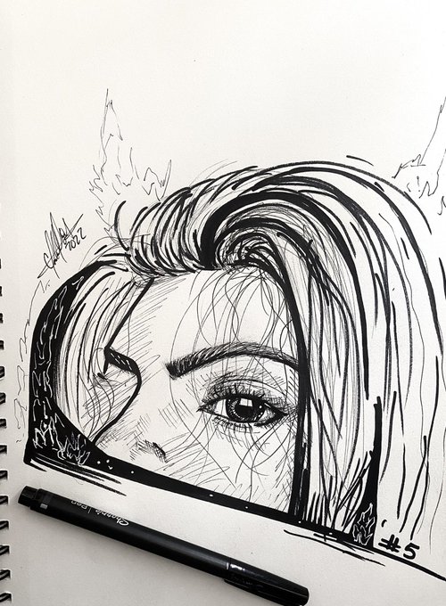 @inktober DAY 5: FLAME 🔥 #art #sketch #inktober2022 #portrait #drawing #ink #painting #ilustration