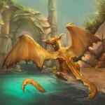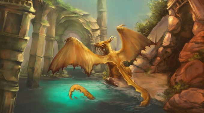 Gold dragon basking somewhere off the Lucidian Ocean. If it seems like my pieces used creatures as excuses to practice tropical ruins with water features that's because that's exactly what happened. #CreatureMenagerie #criticalrolefanart #criticalrole