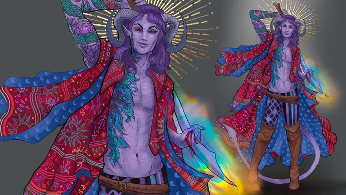 Mollyauk activating Rite of the Dawn. I only had time to do one piece for @ExandriaArtists #SpellsnStuff project so I chose the most complex character design I could. Also- lines are hard ✨ #criticalrole #criticalrolefanart #mollymauk