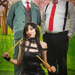Saturday of @CastlePointCon I went with my amazing friends in a #spyxfamily #cosplay group! I was Yor and my friends looked amazing as Loid & Frankie! 🥀💍🗡️🔫📝👓 . 📸: @Pretear ❤️
