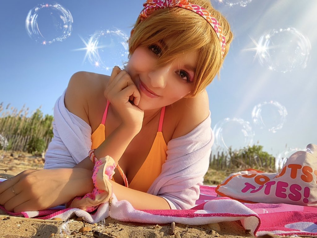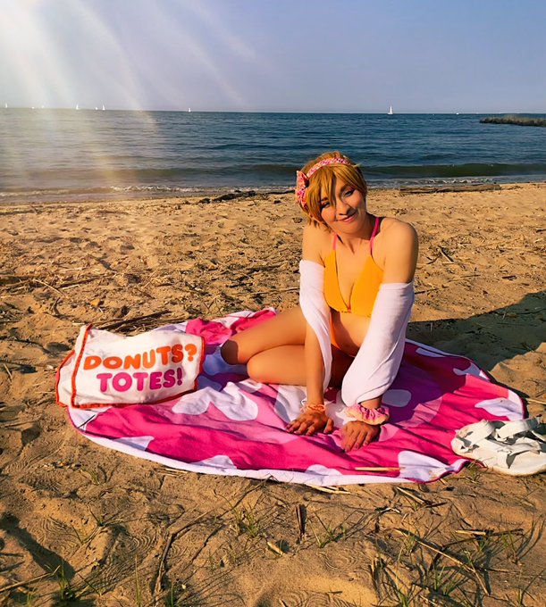 🍩 Perk Up. Be Bold. Stay Sweet.🍩 Today is national donut day and it has been wonderful weather lately so had to bring out Dunky-Chan for a summer look at the beach! 🧡💕🧡☀️🍩 #cosplay #dunkin #dunkinlover #NationalDonutDay 👍🏻