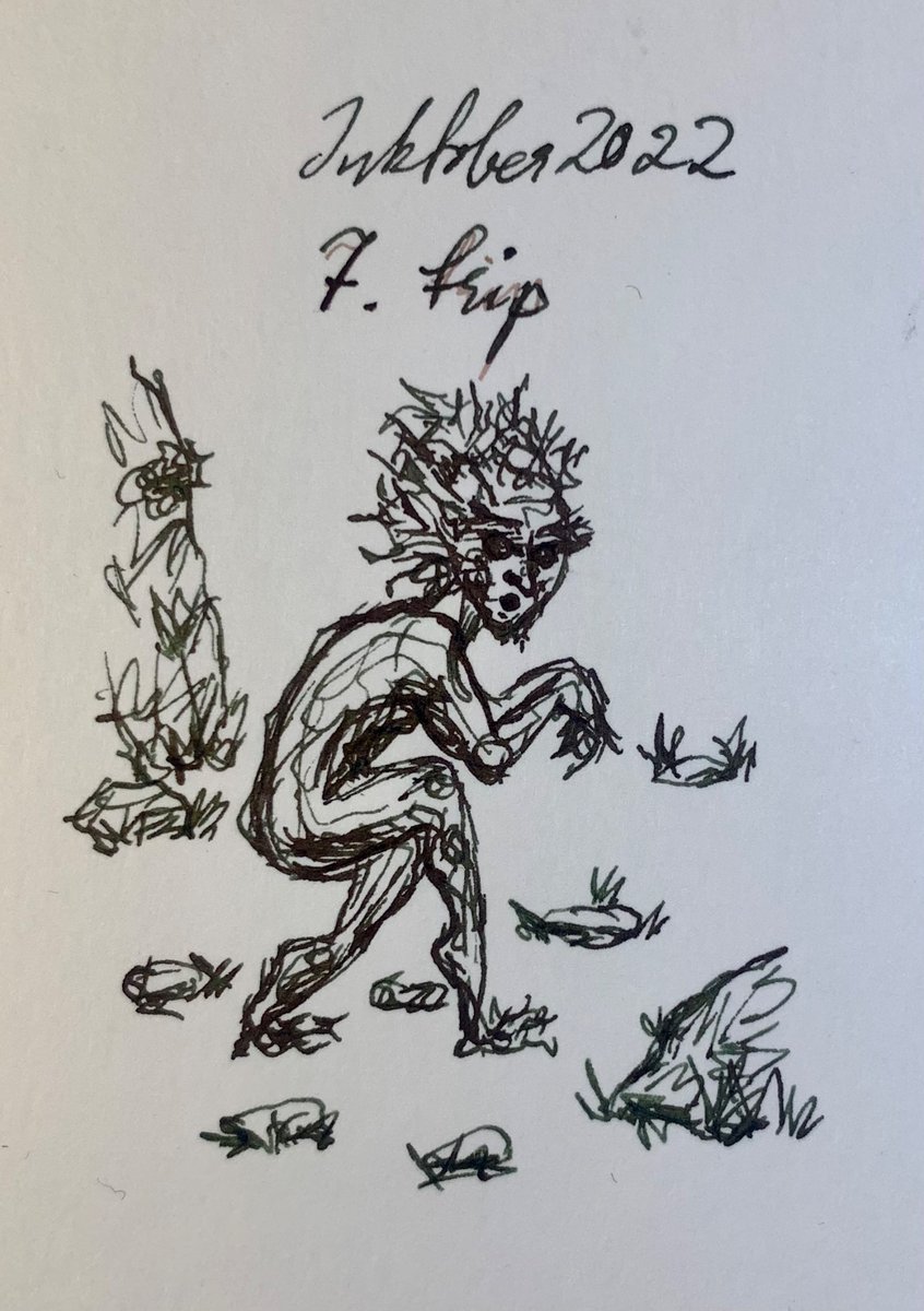 #inktober2022 #inktober #inktoberday7 #trip Some small Fair Folk, twig- or disordered bush-like being, tripping away quietly. Faber-Castell Grip #fountainpen, Diamine Evergreen for #ink, #Canson multiple media paper.