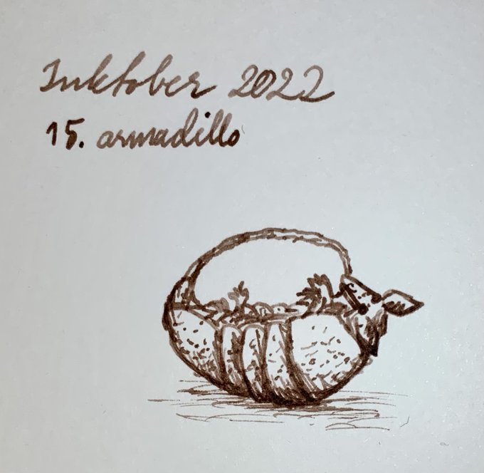 #inktober2022 #inktober #inktoberday15 Some prompts are more fun, some less. Saw a basket made from a hollowed-out #armadillo once. Cool but macabre. #LamyALstar F nib #fountainpen, pink ink from #Scribo on #Canson art paper.