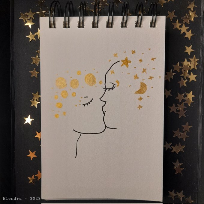En ce moment c'est pas facile mais courage, on va tous y arriver 🤍 * * * * * #Inktober #inktober2022 #inktoberday26 #ego #lovebook #book #gold #or #aquarelle #aquarelledorée #drawtober #artistoninstagram #ink #traditionalart #sketch #sketchbook