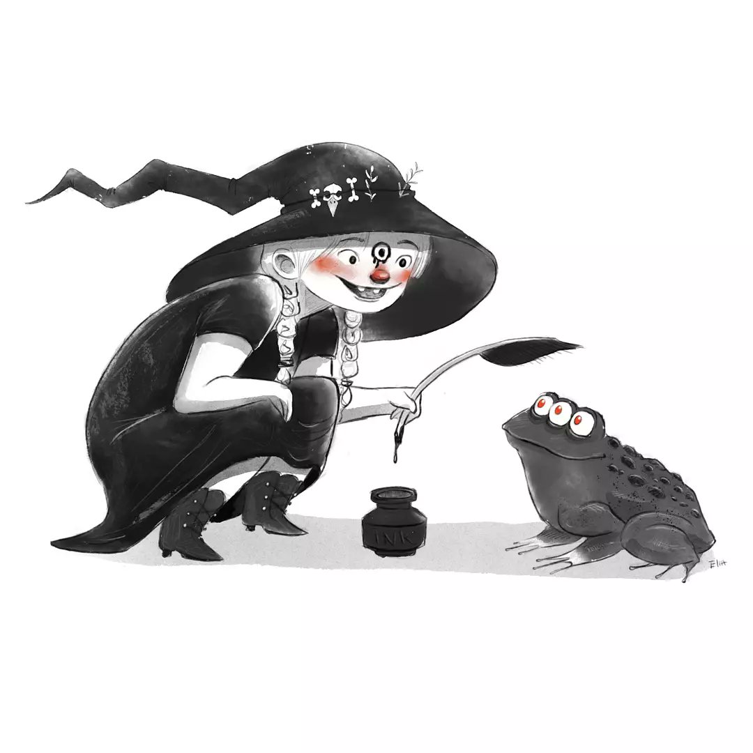 I seem to be getting to know this little witch and her family for #folktober / #inktober2021 ! I've shown detail crops on my Instagram. I'm looking forward to seeing what kinds of mischief her and her Toady friend get up to.