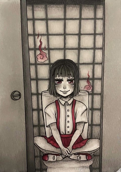 Hanako-san Inktober day 16 #Inktober #inktober2022 #Inktoberday16 #inktober2022day16 #hanakosan #yokai #yokaitober