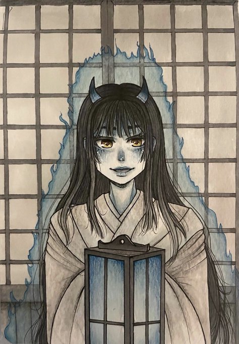 Ao andon Inktober day 19 #Inktober #Inktober2022 #Inktoberday19 #inktober2022day19 #yokai #yokaitober #Aoandon