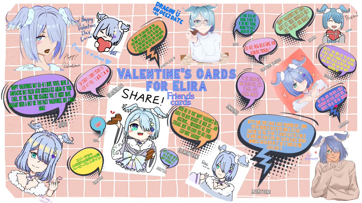 On Valentines, we held an event in Elicord where anyone could send in any messages/art that they'd like us to compile & send to Elira. It's been a few days since, but we're finally done compiling! We hope this will find its way to Elira for her to see! #EliraPendora#pendorART