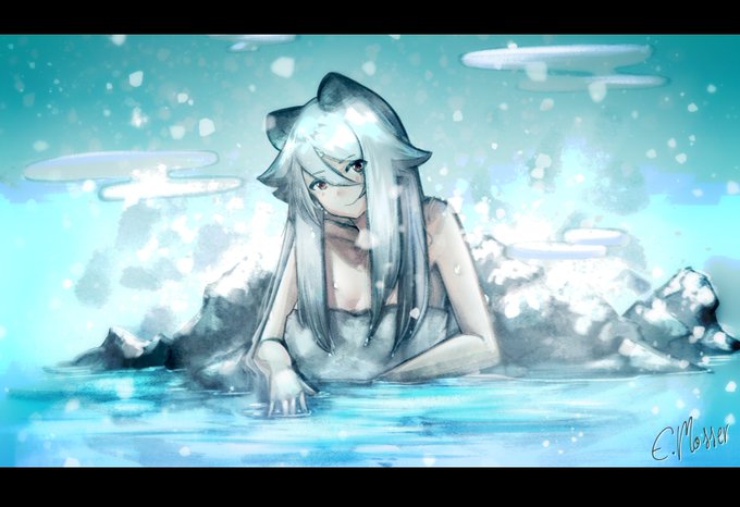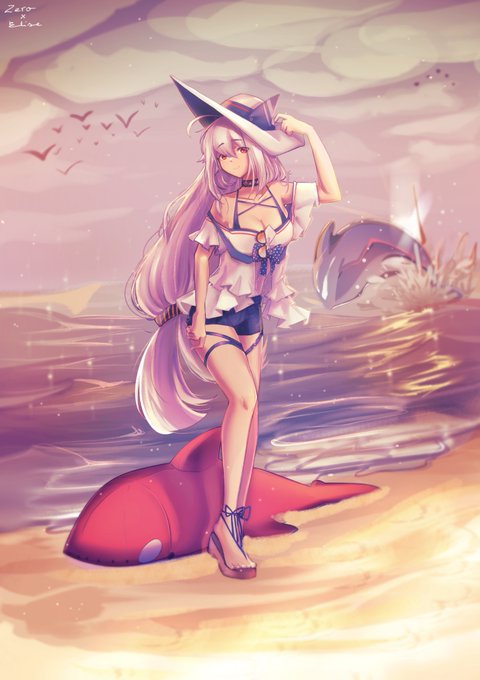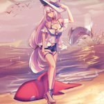 Skadi in her summer skin and her red orca on the beach ! Collab with the fantastic @blackcurrant_j 😳 #アークナイツ #明日方舟 #Arknights #ArknightsFanArt