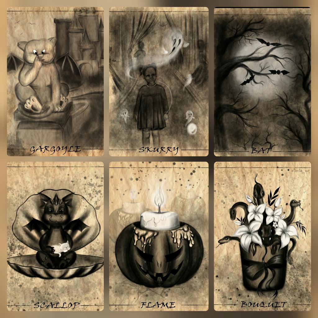 Good morning, lovely people🤍! Now I have 6 Halloween cards available👻. There will be a new DROP today🚘. Which of these cards do you like the most?✨ #Inktober #tezosnfts