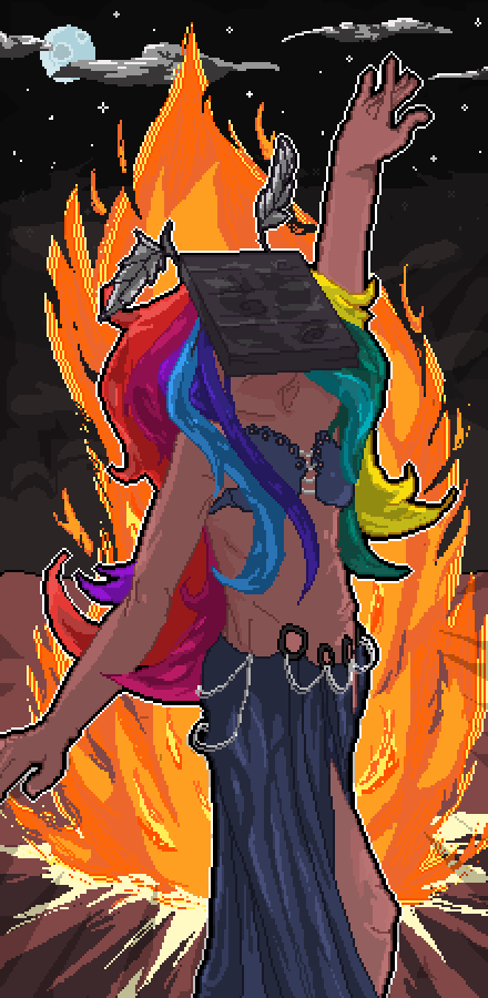 those flames are younger, yet older than mankind, flames got wisdom, tend to the flames! Challenge word : Fire check it out here~ pixilart.com/art/fire-202d0… -tags- #pixilart #pixelart #challenge #fire #blaze #flame #bellydancer #easterndance #tribal #gathering #worship #beach