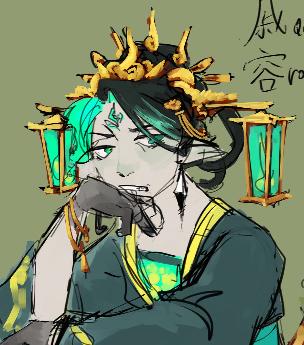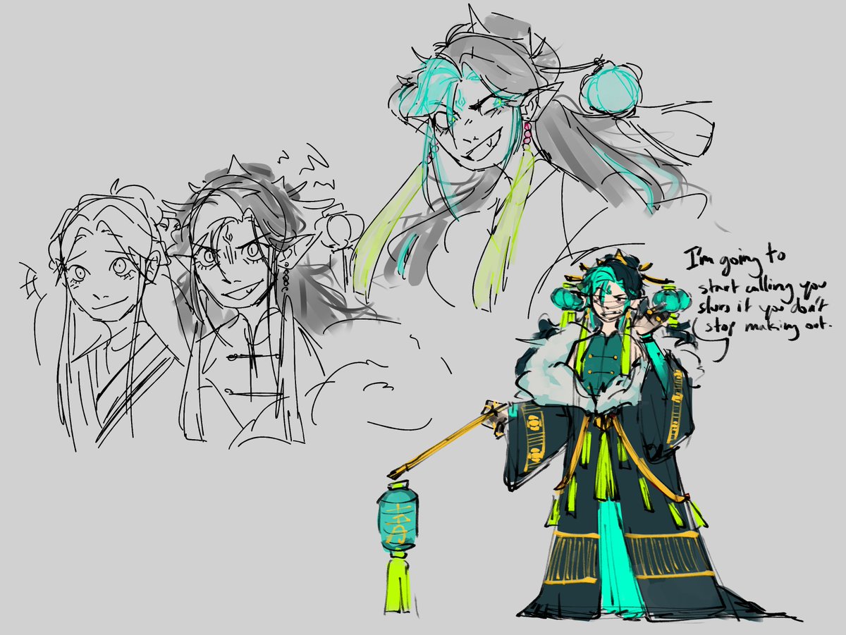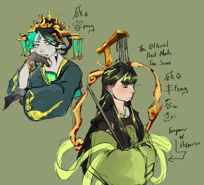 #tgcffanart: qi rong dressing up and gu zi but he is an adult now and also god king emperor of heaven
