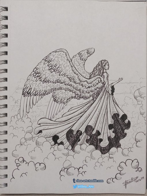 Tamaño: 19.7 x 27.9 cm / 7.7 x 10.9 in #Inktober #inktober2021 #art #artwork #traditionalart #dibujotradicional #dibujo #angel