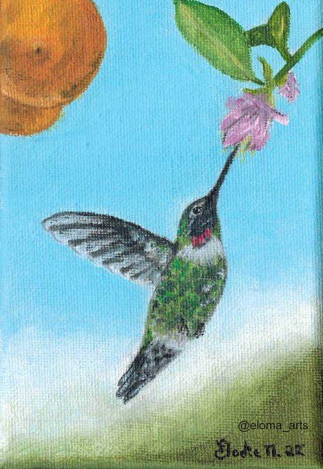 Hi! ☺️ Day 4 #birdtober - Hummingbird! I made this painting on a small cotton canvas with acrylic. I hope you like it! 🌸 Photo reference: @/journey_to_inspiration (Instagram) #inktober #birdart
