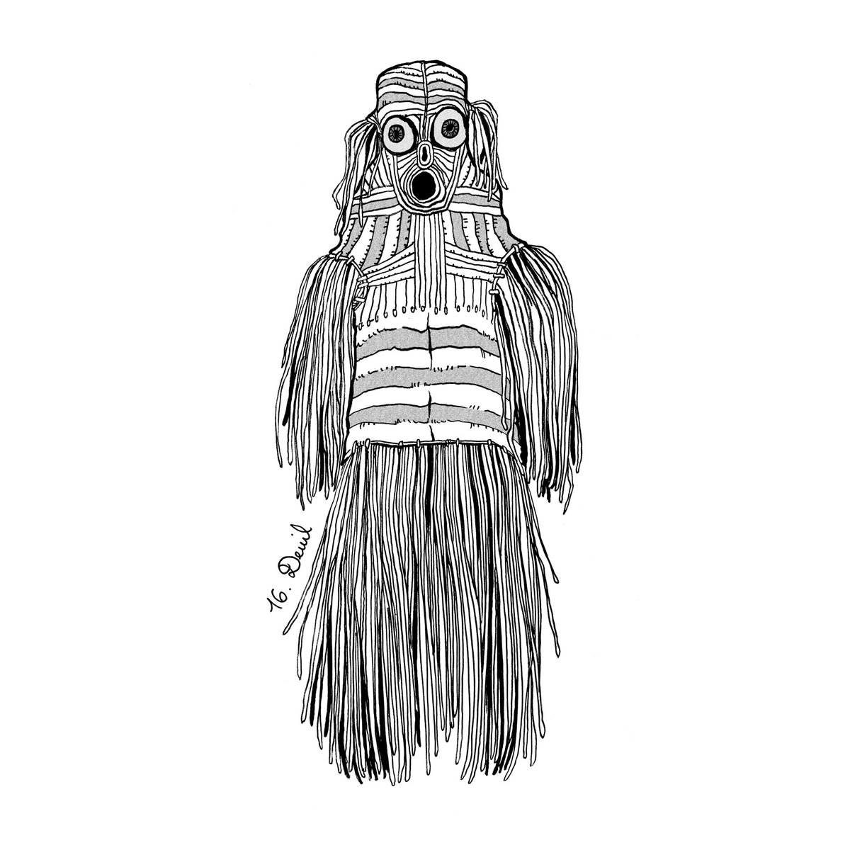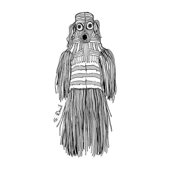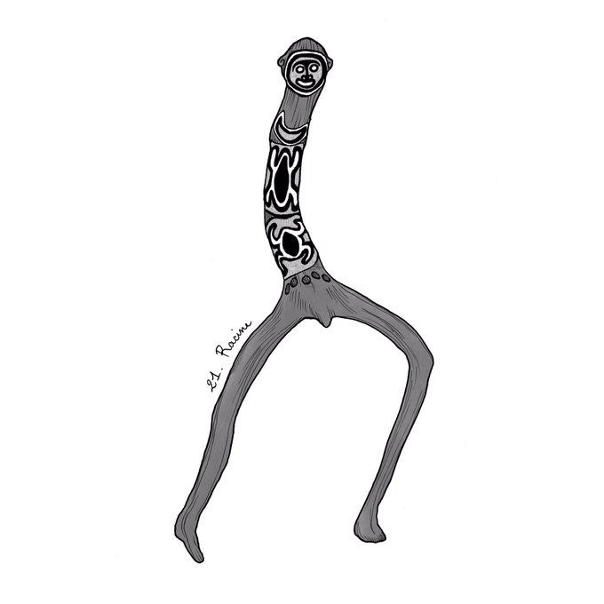 Jour 21 : racine Cette étrange figure, originaire des Kiwai de la région du fleuve Fly en Papouasie-Nouvelle-Guinée, est appelée Imunu. #Pacifinktober #inktober #kiwai #papuanewguinea