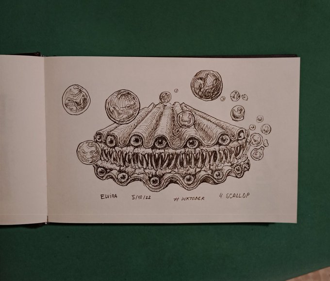 Bueno, aquí va el dibujo de ayer, era más feliz antes de buscar imágenes de Vieras. 😅 #inktober2022 #inktober2022day4 #Scallop