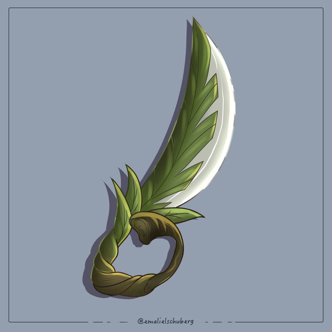 #Swordtember Day 20 - Leaf 🍃 Missed a couple days, but this one was a fun warmup! Banana's Whisper - a strange blade found on a lonely island where a stranded elf was said to live. When swung it has the distinct odor of margaritas and loneliness. 🍹 #swordtember2022 #leaf