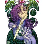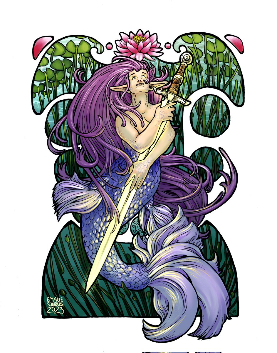 "Lady of the Lake" - 8x10, ink drawing & digital color 🧜♀️ 2nd #mermay2023 piece and 1st time trying out the art nouveau style! I could stare at Mucha's work all day (and I probably did, doing style research for this piece). #art #artwork #drawing #inkdrawing #arthurianlegends