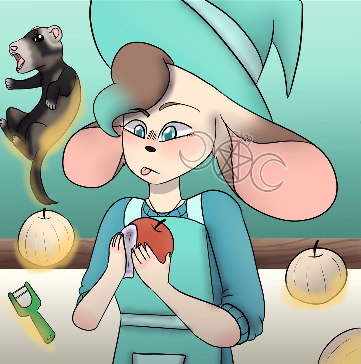 witchtober day 21 apple #witchtober2022 #inktober2022 #artist #Inktober #witchtober #witch i gave them a femilier! probably gone make a ref for them when witchtober is done. prompt list:twitter.com/GaelicNox/stat…