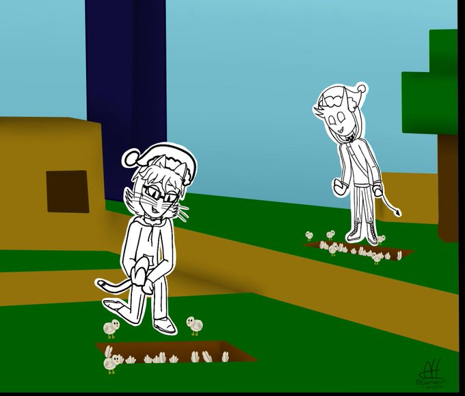 Hi there, here's some late fanart. I've always liked how Bad and Ant's idea of a prank is to put an abundance of (living) things in their friends home and bases. 🐔🐑🌵🌻 #antfrostfanart #badboyhalofanart