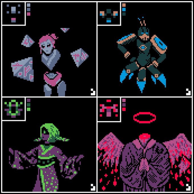 I used this sprite generator and chose a few sprites and drew what I saw hairic.itch.io/random-spr #pixelart #ドット絵