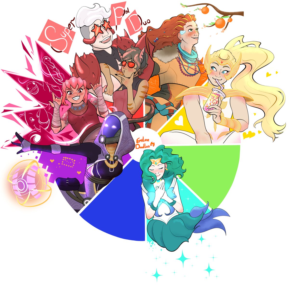 The yellow character had to be Shera 💛 I never get tired of drawing her For the next one, suggest purple characters! 💜 #colorwheelchallenge #shera twitter.com/EmileeDoodles/…