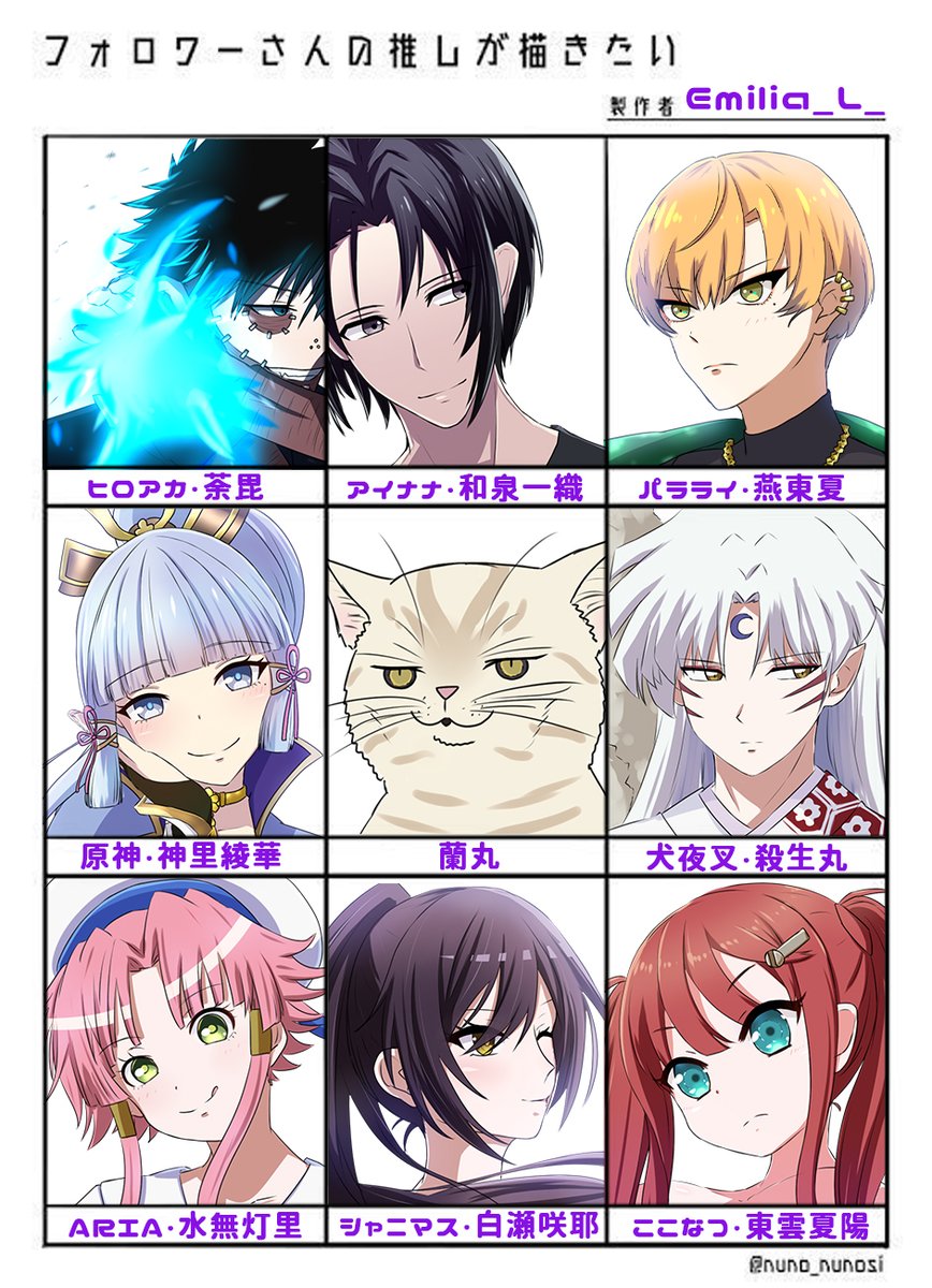 テンプレをお借りし、フォロワーさんの推し9名描かせていただきました!リプくれた方々に感謝ァ!!!! 描けなかった方々ゴメンサイ!!!! またやりたいナーーーーーーー #フォロワーさんの推しが描きたい