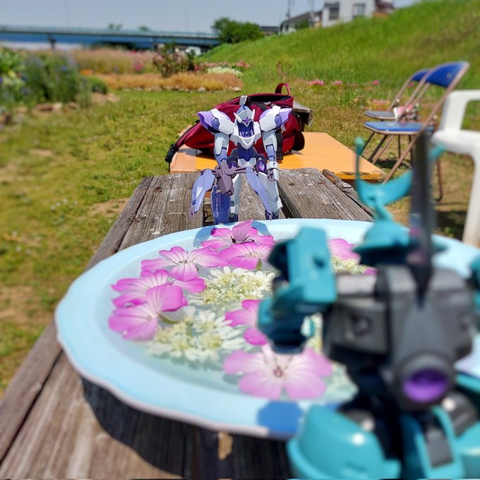 ディランザと新しい公園⑤ 初めて見るお花だね ディランザ、もうだいぶ暑いから 休憩したら帰ろっか #ディランザ #ガンプラ