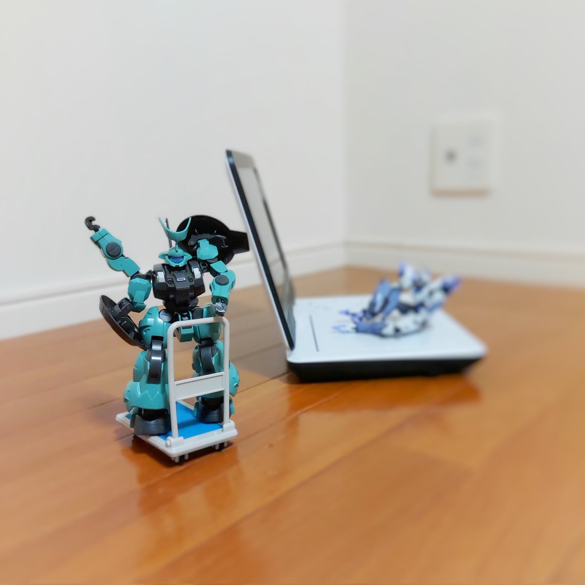 可愛いーー!!!! 可愛い、可愛いー! ディランザ、はしゃいでるね ディランザ、楽しそうだね ディランザが楽しそうで私も嬉しいよ (台車レスキュースレッタさんに感銘を受けた故にそれはキックボードではなく台車であることをディランザは知らない) #ガンプラ #オモ写 #水星の魔女