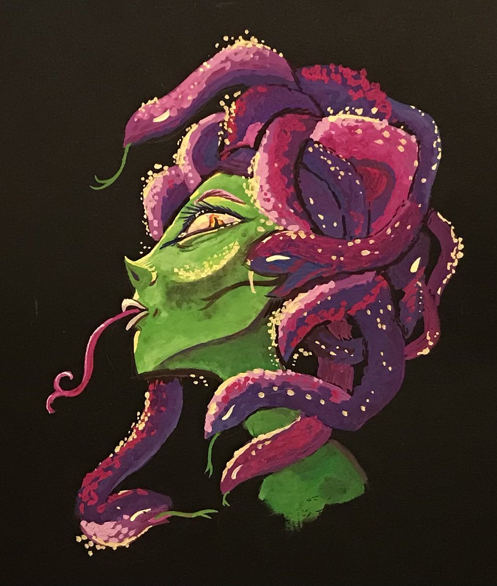 Today’s prompt is gorgon. She came out way snazzier then I meant it to. It might be done, or I might do a little more later. #drawlloween #paintober #inktober #emilyzelaskoart #mudus #gorgon #emilyzelaskoart #spookyart #spookycute #mabsdrawlloweenclub #halloweenart #monsterart